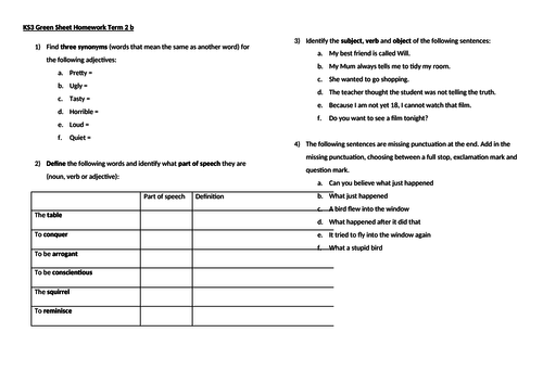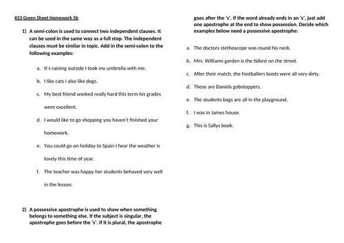 Spelling Punctuation And Grammar Worksheet Teaching Resources