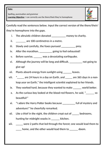 Ks2 Ks3 Spag Homophones Grammar There Their They Re Worksheet Teaching Resources